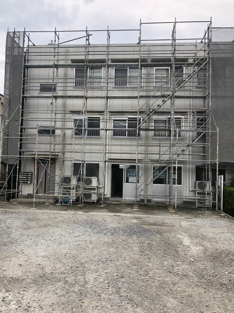 外壁改修足場工事|3階建て建物 くさび式足場施工事例