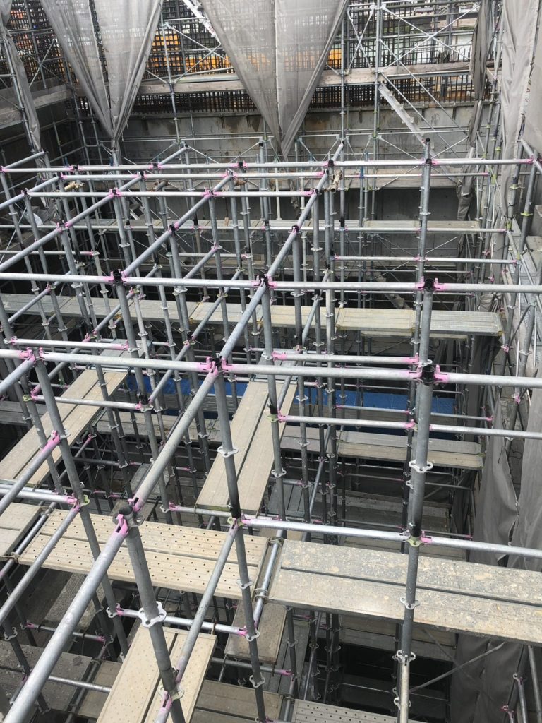 内部足場工事|吹き抜け空間対応 くさび式足場施工