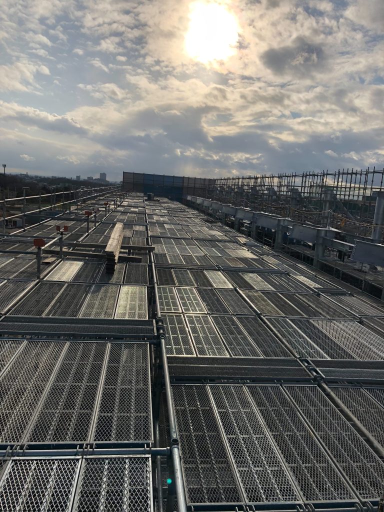 屋上全面足場工事|大規模フラットステージ施工